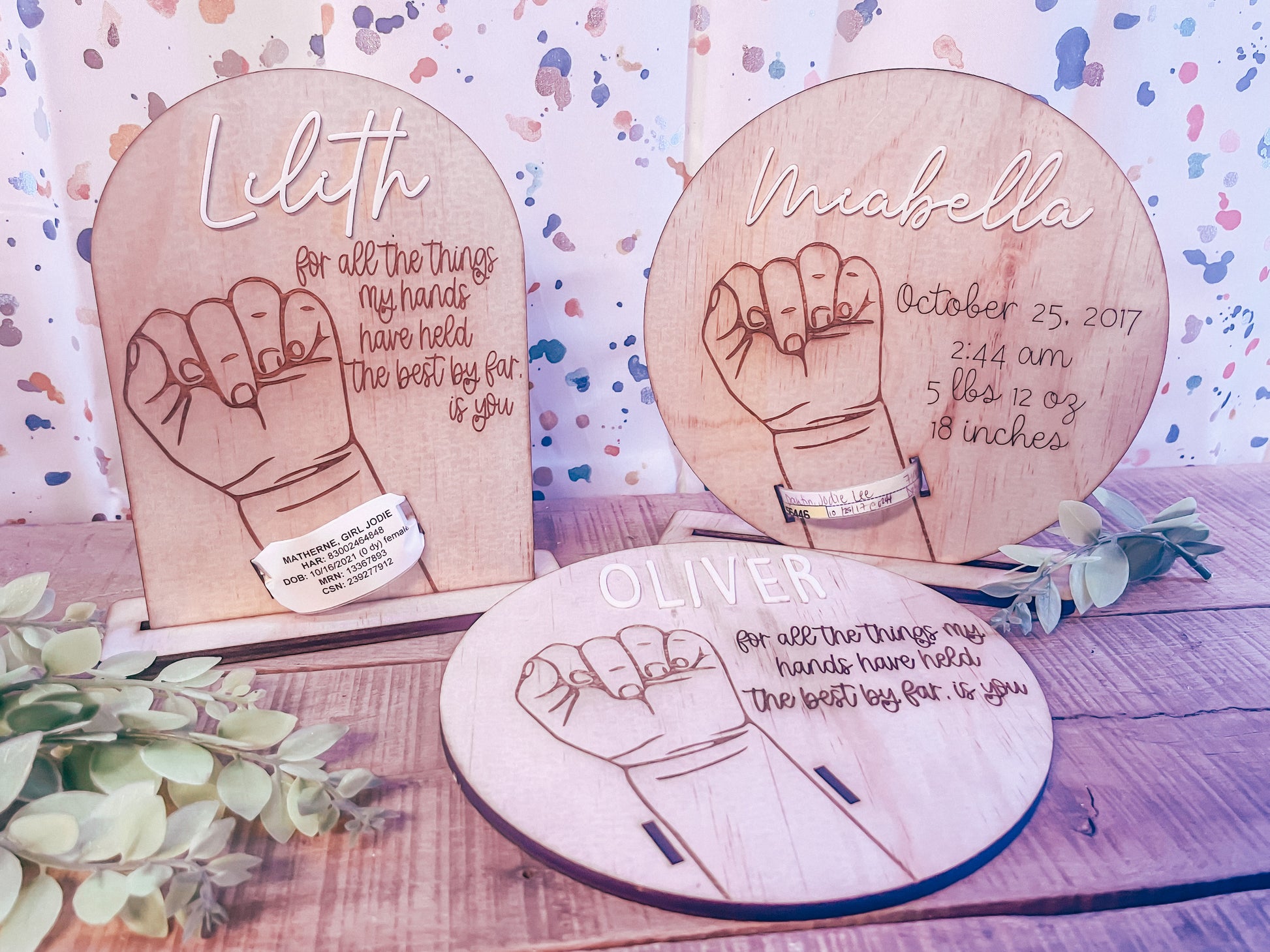 Looking for the perfect baby shower or new baby gift? Our personalized hospital bracelet display is sure to delight any new parent. It's a thoughtful and meaningful way to welcome a new life into the world and commemorate one of the most special moments in a family's journey.